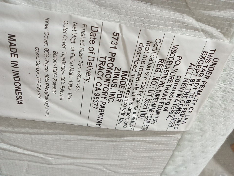 ZINUS MEMORY FOAM BED MATTRESS - narrow twin - 5" - beige (MODEL: AZ-FMS-5N)