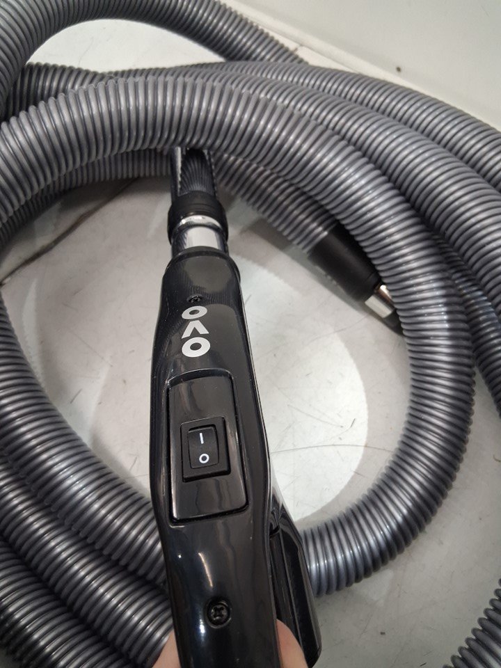 OVO UNIVERSAL CENTRAL VACUUM KIT, HIGH VOLTAGE SWITCH ON HANDLE, CRUSHPROOF HOSE FITS MOST INLETS - 30FT - BLACK/GREY (MODEL: ACCHO-35HV-BK)