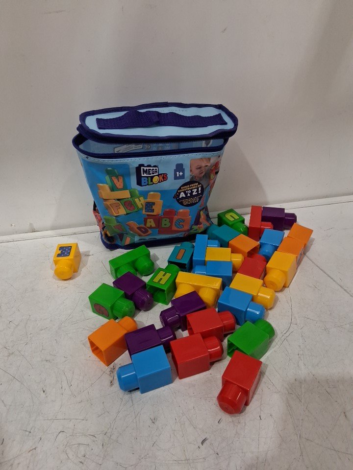 30pc kids Fisher-Price MEGA BLOKS ABC Toddler Blocks Building with Reusable Storage Bag - assorted