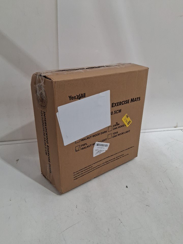 12PK Yes4All SHOCK ABSORBING EVA Interlocking HIGH DENSITY WATERPROOF Exercise Foam Floor Mats with Border for Gyms, Yoga, and Outdoor Workouts- 12" X 12"- 24 SQ FT- WALNUT WOOD LIGHT/LIGHT BROWN (MODEL:P9PL)