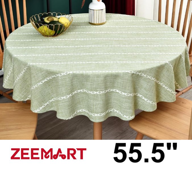 zeemart cotton linen look round dinning table cloth- 55.5" round- sage green/white