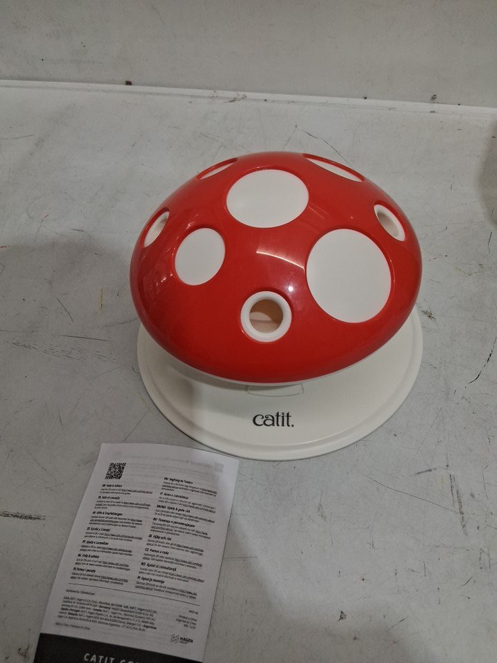 CATIT SENSES 2.0 MOTION ACTIVATED 360° INTERACTIVE MUSHROOM FEATHER TEASER CAT TOY - RED/WHITE (model: 43142)