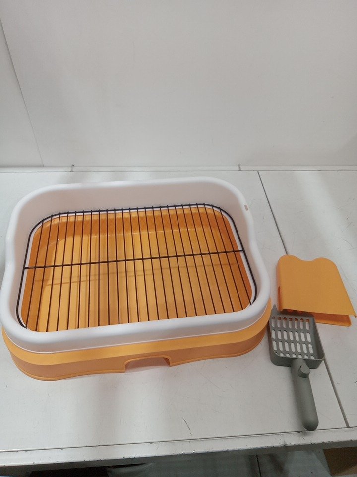 Pet training tray toilet with scoop - 12" x 17" - orange/white