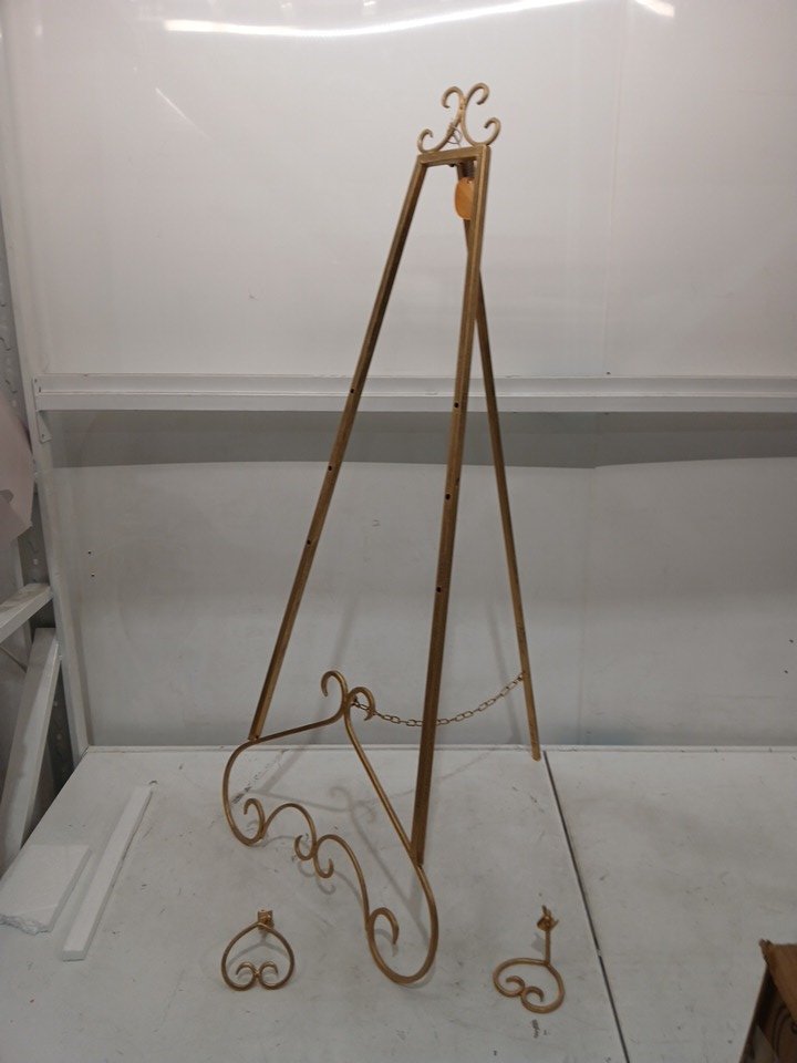 deco79 metal scroll free standing adjustable display easel with chain support - 48" tall - gold (model: 27391)
