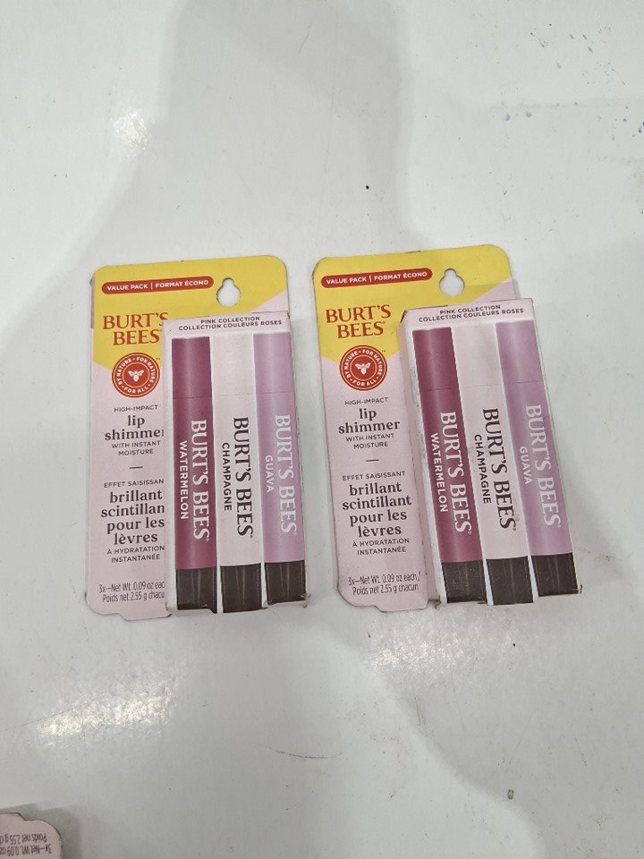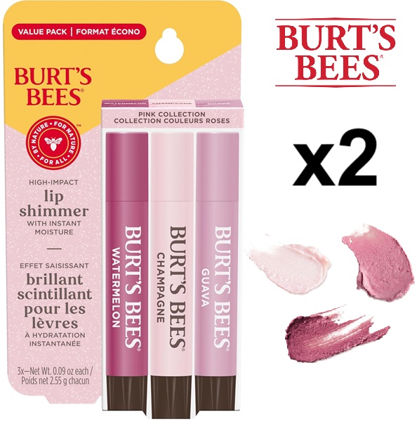 2 (3pk) burt's bees high impact lip shimmer- watermelon/ champagne/ guava- 0.09oz/each