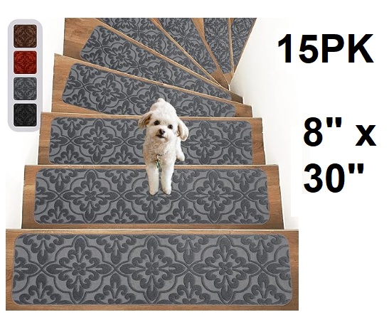 15pk MATAHUM Non-Slip Carper Stair Treads - 8" x 30" - grey
