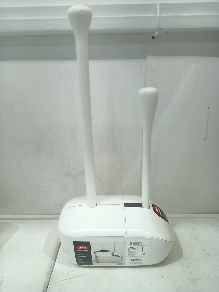 OXO GOOD GRIPS HIDEAWAY TOILET BRUSH AND PLUNGER COMBO SET - WHITE (MODEL: 1373580)