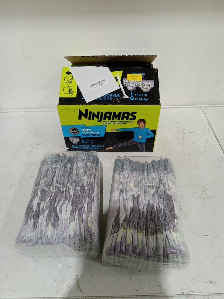 34PK UNISEX YOUTHS NINJAMAS NIGHTTIME UNDERWEAR WITH ODORMASK & ALL-NIGHT LEAK PROTECTION - LARGE - BLUE/GREEN/WHITE