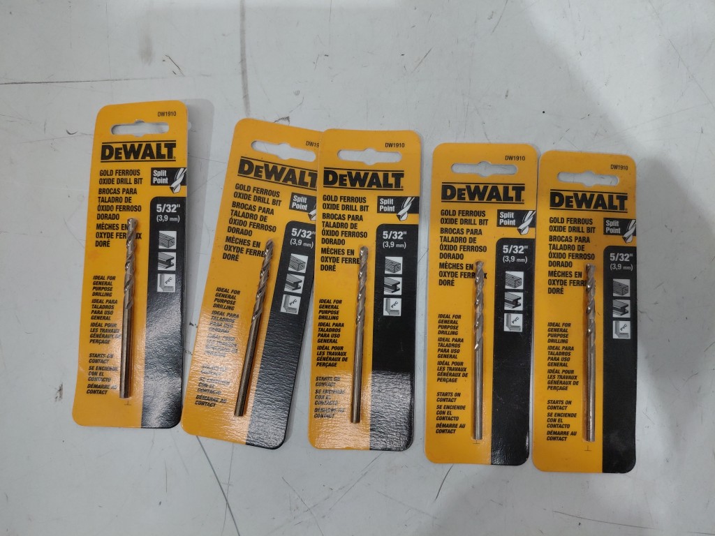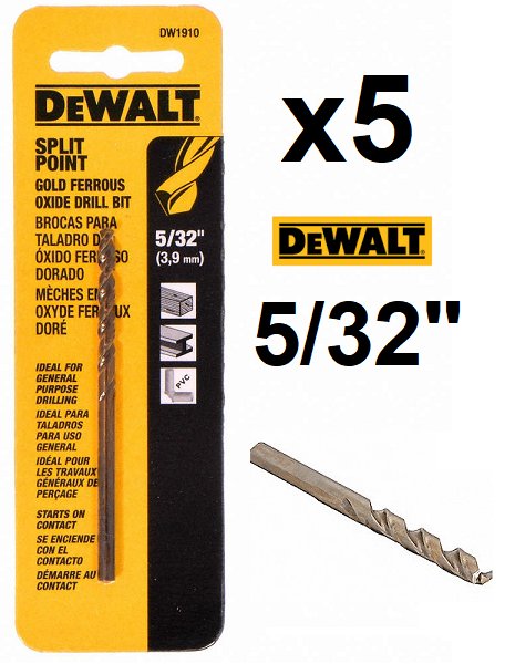 5 dewalt gold ferrous oxide split point drill bit - 5/32" (model: dw1910)