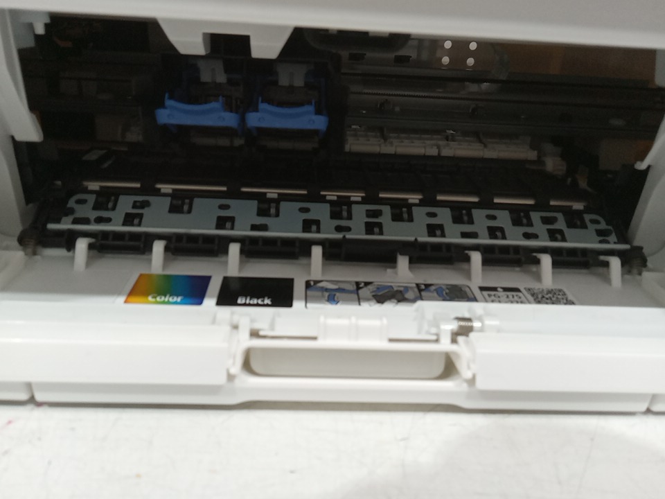 All of the inks are missing from the original packaging. There are minor dirt stains on the top and scratch marks on the sides due to previous use. Tested for basic power only. (Please see photos)