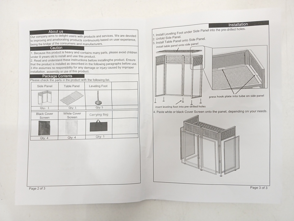 portable folding dj booth with screens and adjustable stabilizer feet - 42" x 46" x 25" - black/white