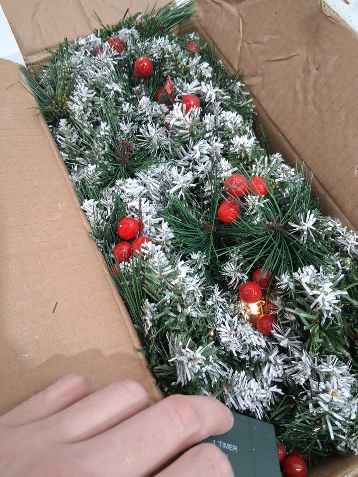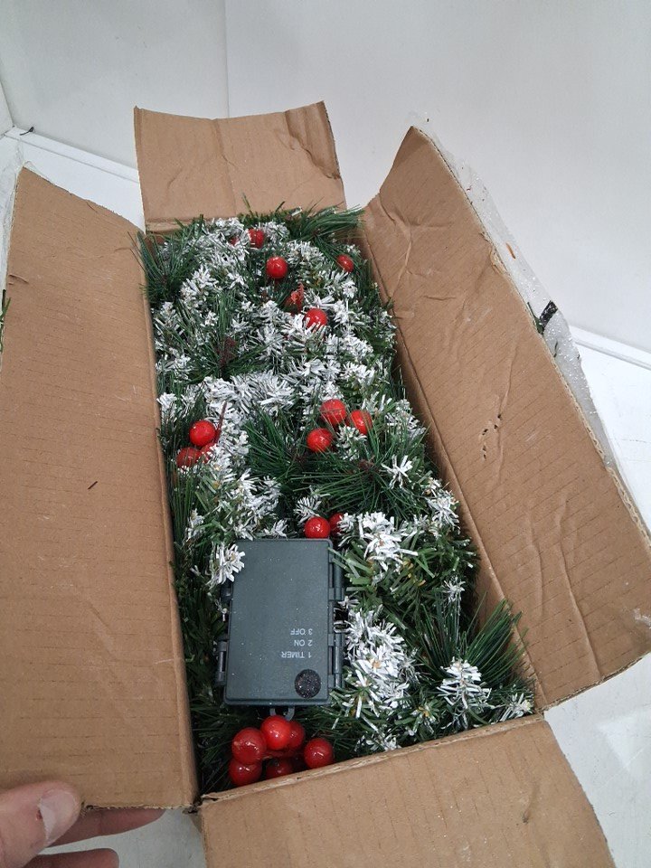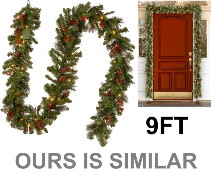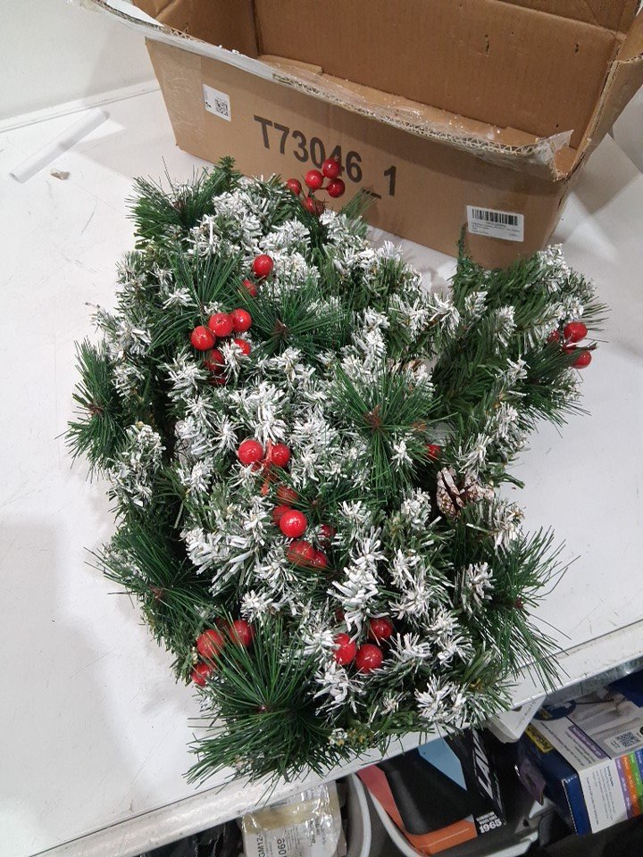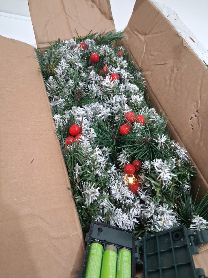 flocked Christmas Garland Pre-Lit with berries - 9FT - White/Green