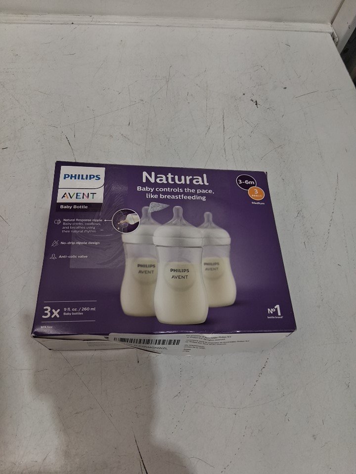 3PK PHILIPS Avent Natural Baby Bottles with Natural Response Nipples - Medium Flow - Flow 3 - 9OZ - CLEAR (MODEL: scy903/03)