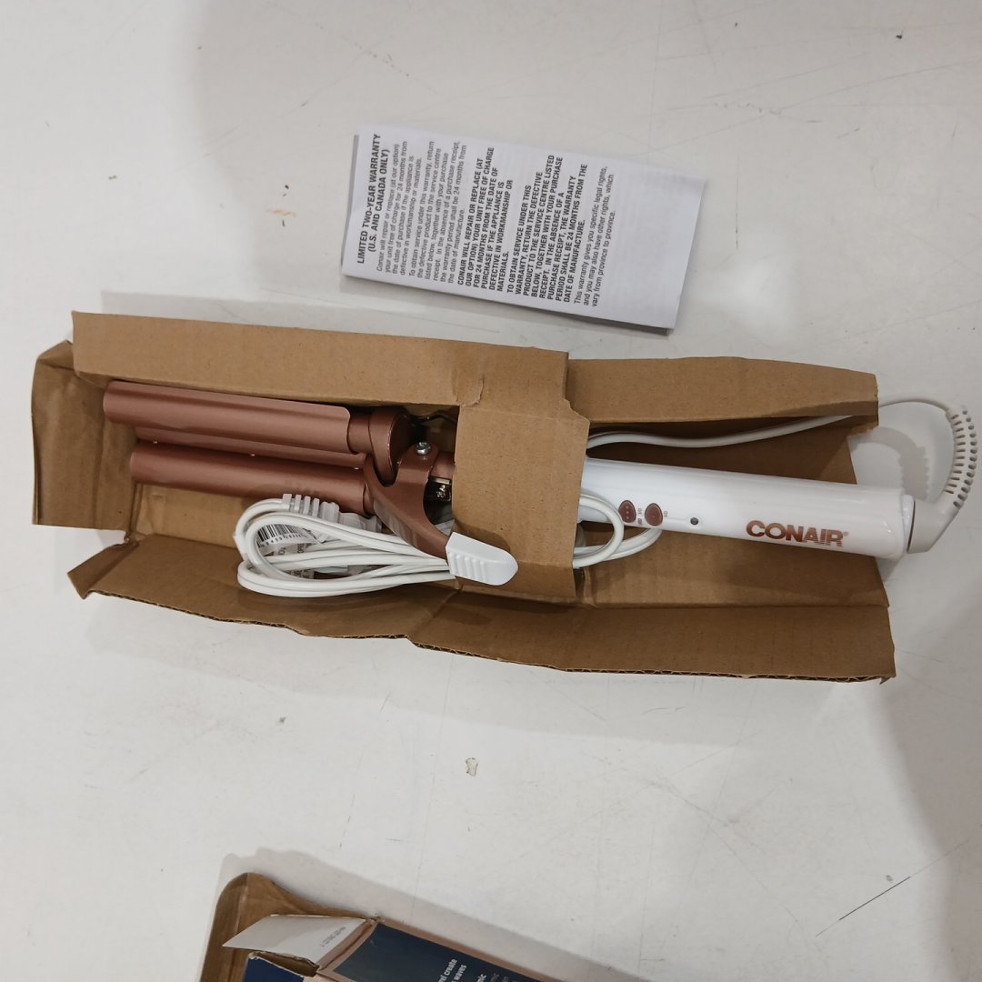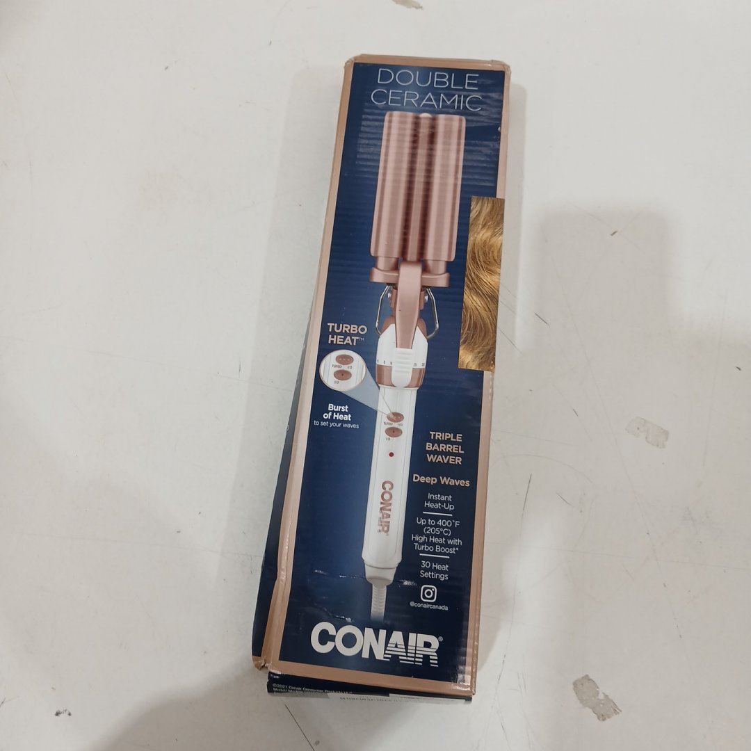 CONAIR DOUBLE CERAMIC TRIPLE BARREL CURL STYLING WAVER FOR DEEP WAVES - 3/4" BARRELS - WHITE/ROSE GOLD - (MODEL: CD704C)