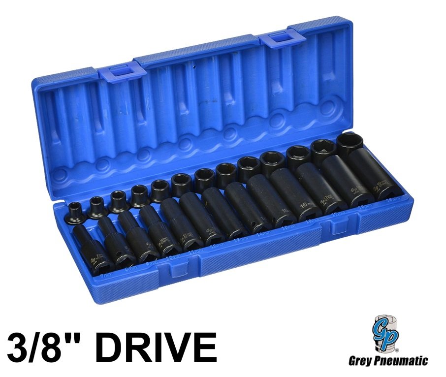 26pc Grey Pneumatic Standard and Deep Length Metric Master Set - 3/8" Drive - black (model: 1226M)