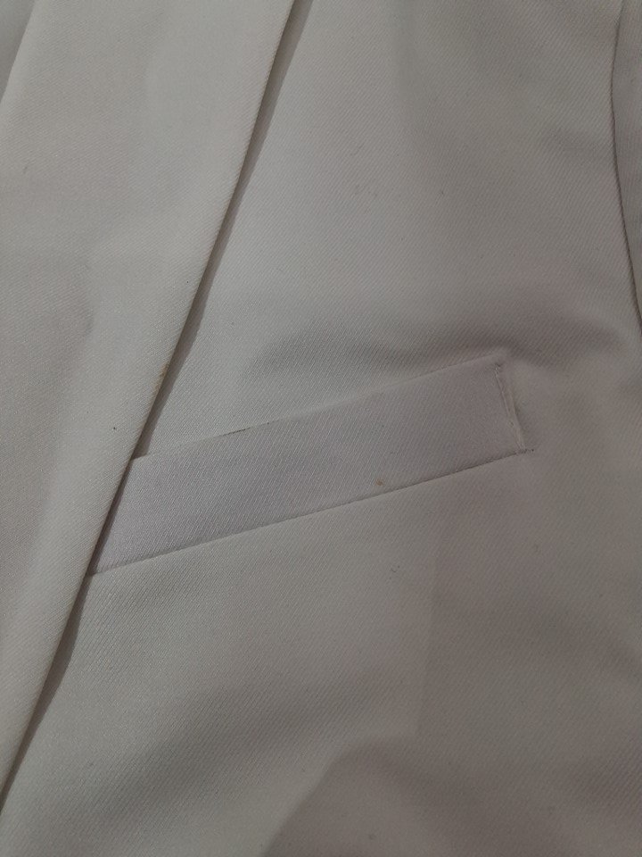 a few very small stain on lapel and back by the neck tag.