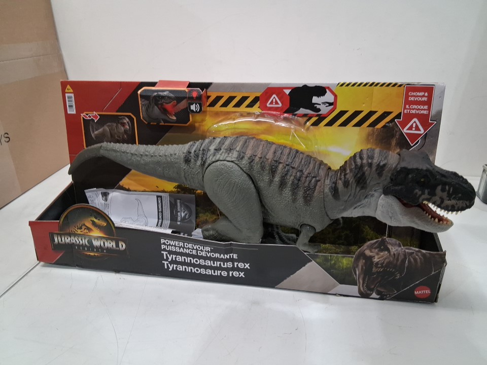 FISHER-PRICE Jurassic World Rebirth Power Devour Tyrannosaurus Rex Dinosaur Figure WITH Lights & Sound - GREY (MODEL: JGB50)