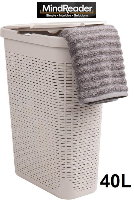 Mind Reader 40L Slim Laundry Hamper with lid - 40l - ivory - (model: ‎40HAMP-IVO)