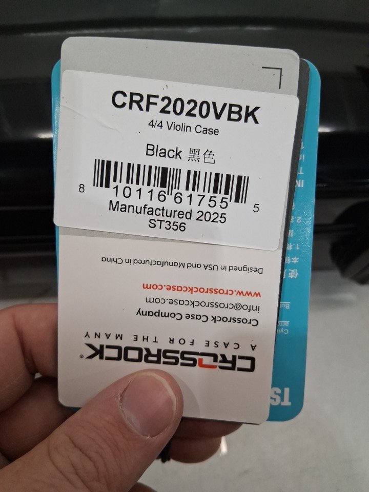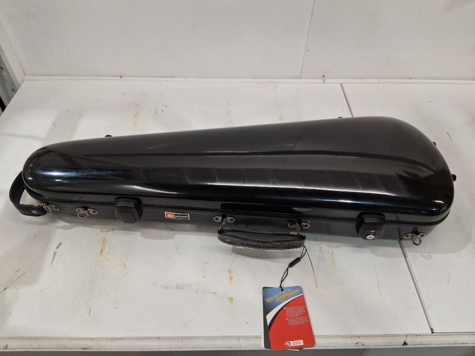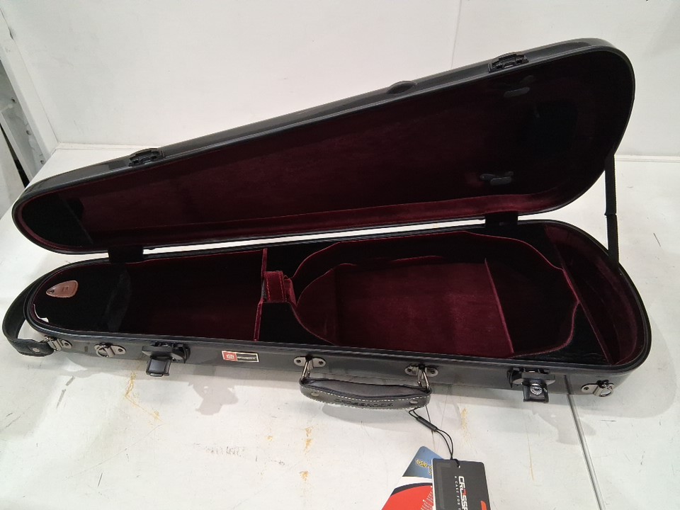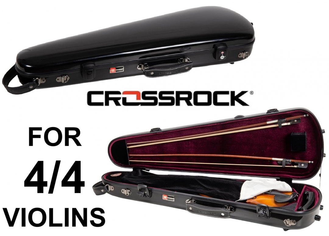 crossrock shaped fiberglass violin case with tsa lock, backpack straps, and velvet blanket - for 4/4 violins - black gloss - (model: crf2020vbk)