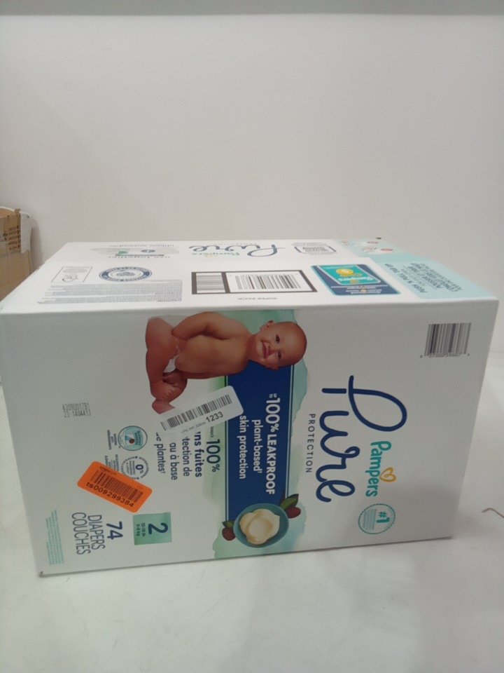 74PK PAMPERS PURE PROTECTION hypoallergenic DIAPERS - size 2 (12LB-18LB)