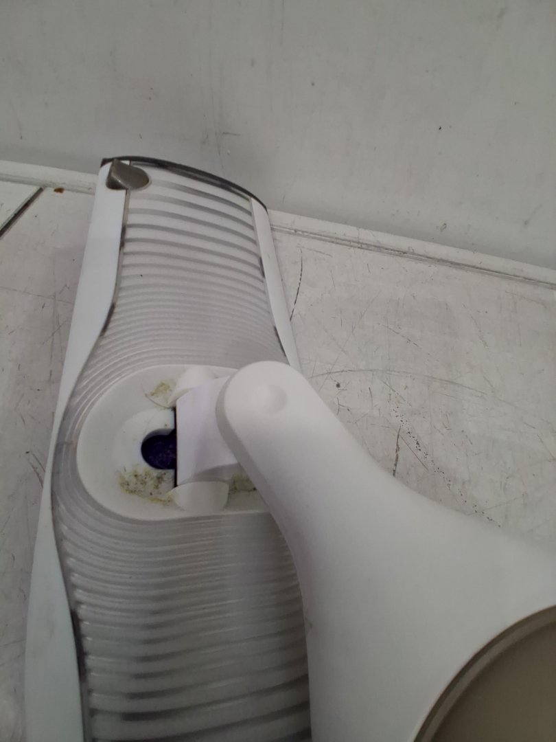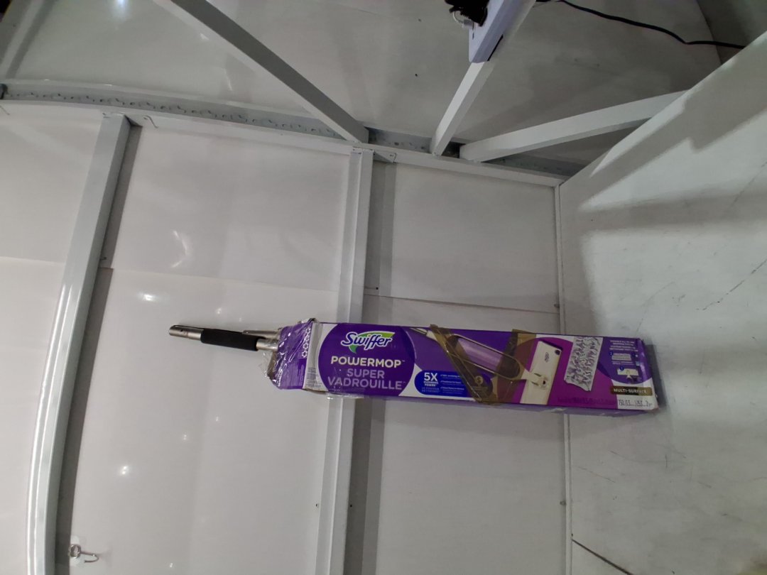 The item has some smudge marks and stains, and it’s missing the mop pad and solution.