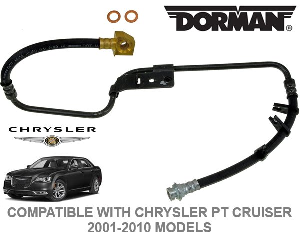 Dorman Rear Passenger Side Brake Hydraulic Hose - Compatible with Chrysler PT CRUISER 2001-2010 Models - BLACK/STAINLESS STEEL (MODEL: H620155)