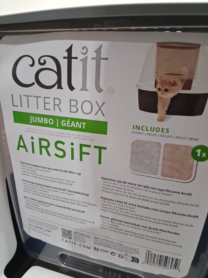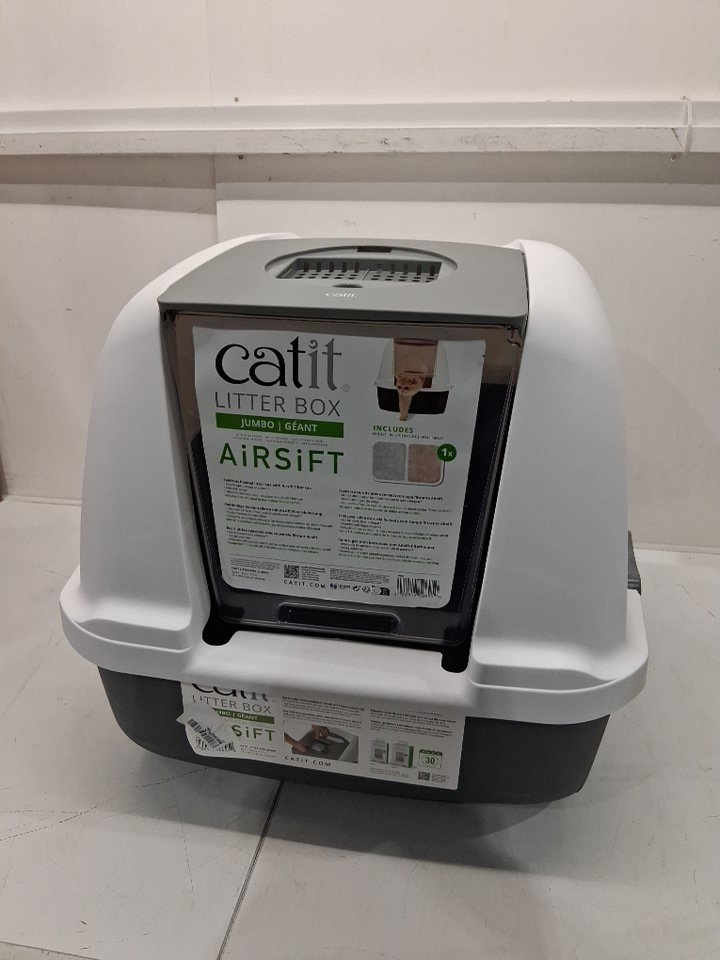 CATIT CLEAN JUMBO HOODED LITTER BOX WITH AIRSIFT AIR FILTER - 22.4" x 18.3" x 19.7" - GREY/white (model: 50695)
