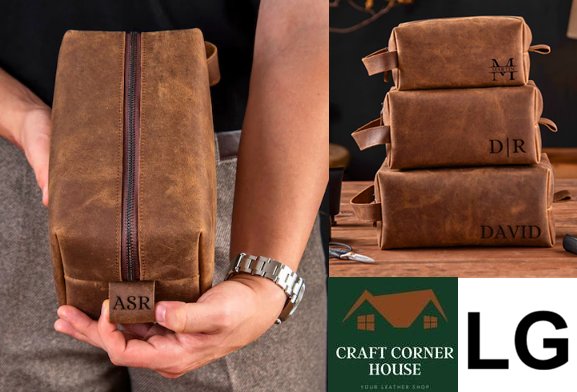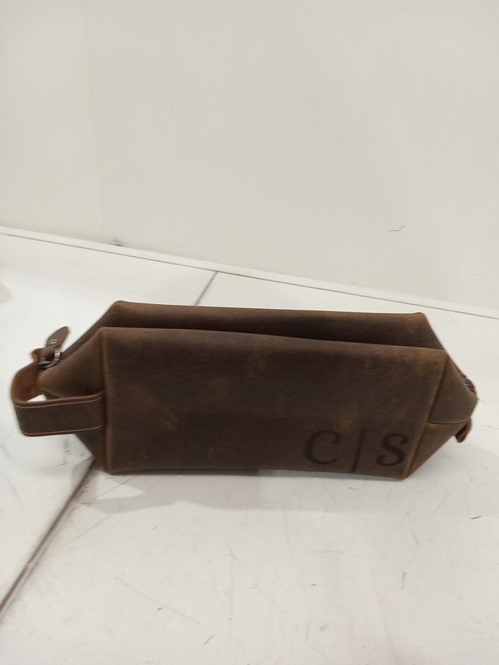 craft corner house personalized "C/S" leather toiletry bag - LARGE (8"X5") - DARK BROWN