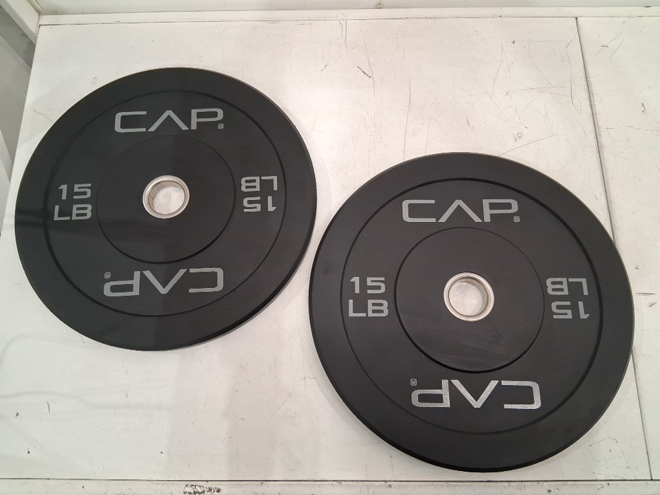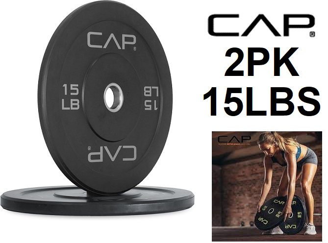 2PK CAP Barbell Rubber Olympic Bumper Plate - 15LBS - BLACK - ( MODEL: ‎OPR6PIS-30 )