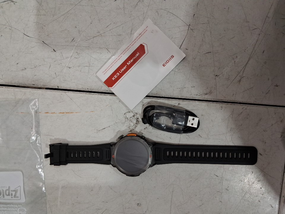men's eigiis ke3 waterproof tactical rugged bluetooth smart watch with flashlight, fitness tracker, heart rate - 1.45" screen - black - (model: ke3-3atm)