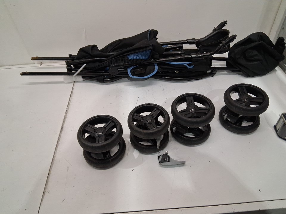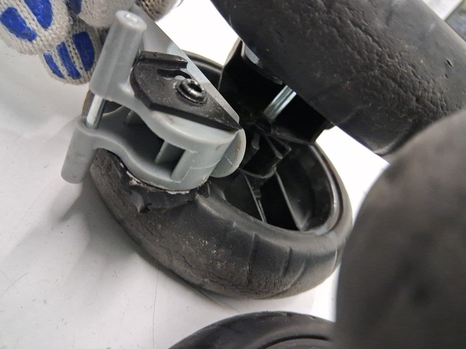 One of the wheel locks is broken off (see photo) Dirt on seat, footrest and wheels from prior light use (see photos)