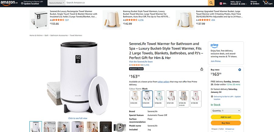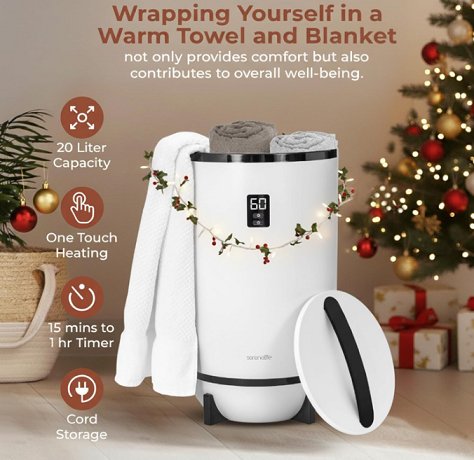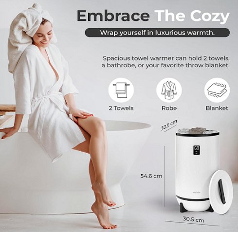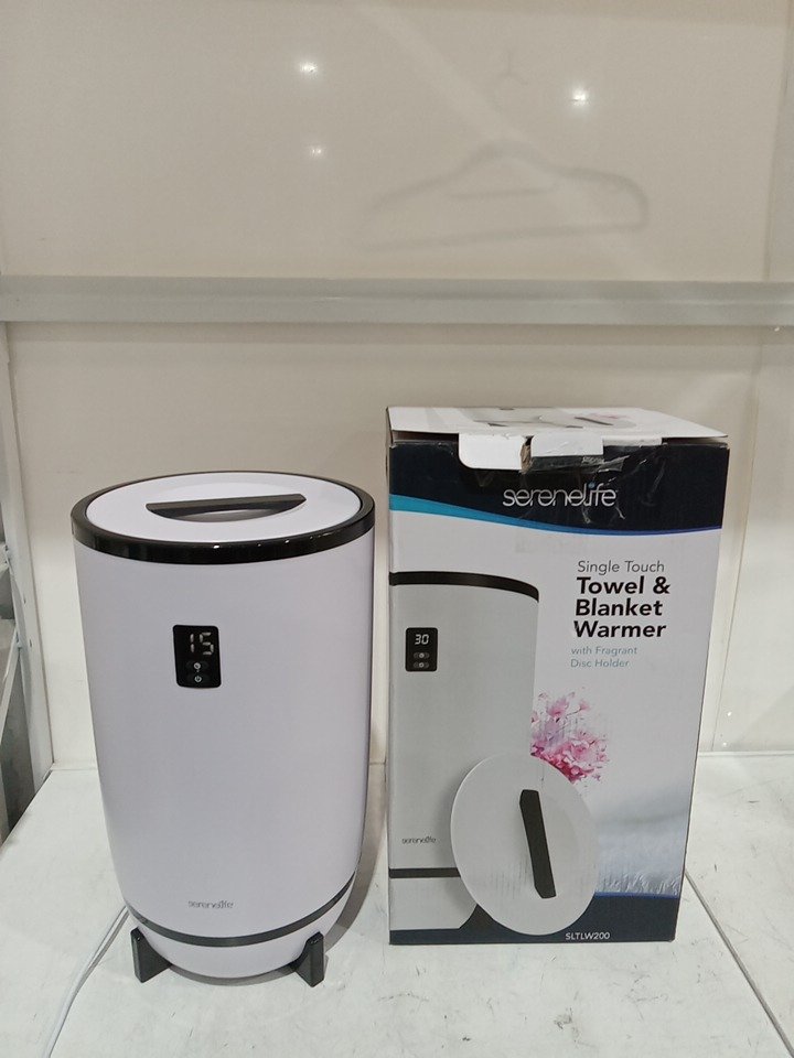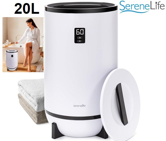 SereneLife Towel Warmer for Bathroom and Spa Fits 2 Large Towels, Blankets, Bathrobes, and PJ’s - 20L - black & white (model:SLTLW200)