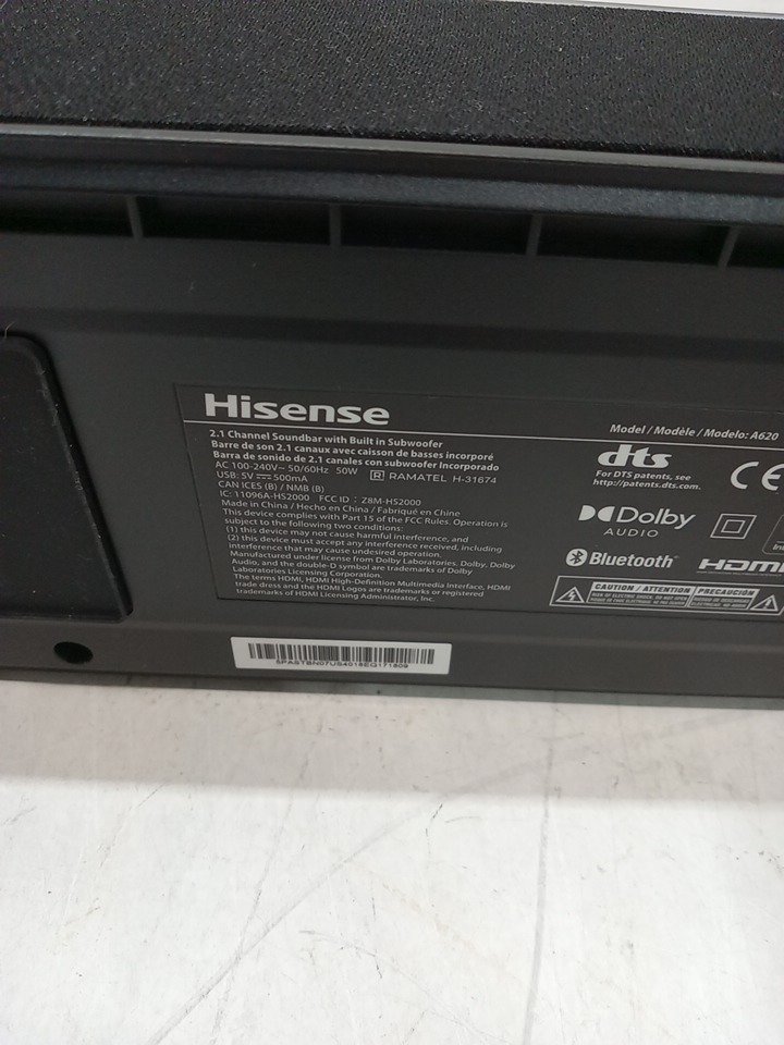Hisense A620 All-in-one Soundbar with 4.75" Built-in Visualised Subwoofer - 2.1ch, 240W Max, Bluetooth, Powered by DTS Virtual:X - black (model: a620)