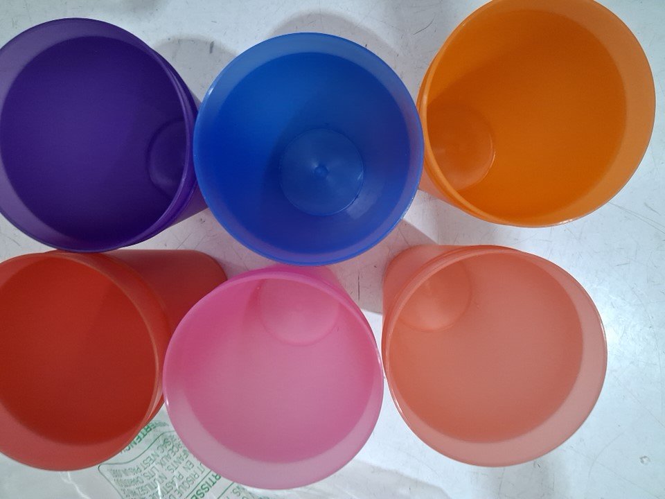 12 assorted plastic drinking cups - 32oz - multicoloured