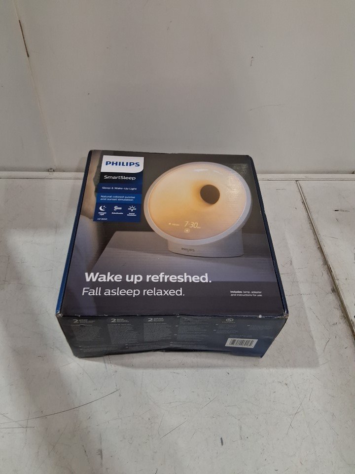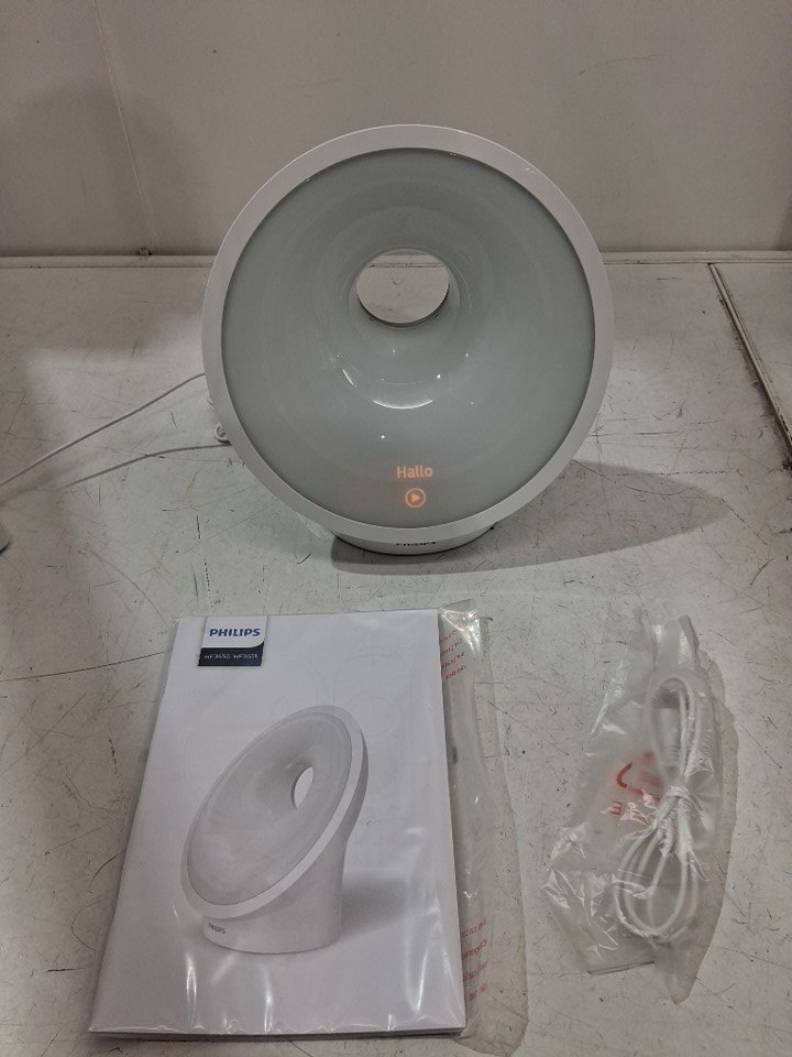 PHILIPS SMARTSLEEP & WAKE-UP LIGHT THERAPY LAMP WITH SUNRISE ALARM & SUNSET FADING NIGHT LIGHT - RADIO & LINE-IN FEATURES - WHITE - (Model: HF3650/60)
