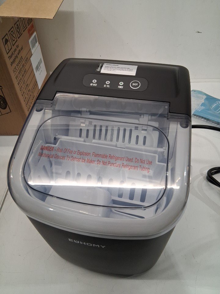 EUHOMY Countertop Ice Maker Machine with Handle, Basket and Scoop - MAKES 26LBS Per Day - BLACK (MODEL: IM-06D)