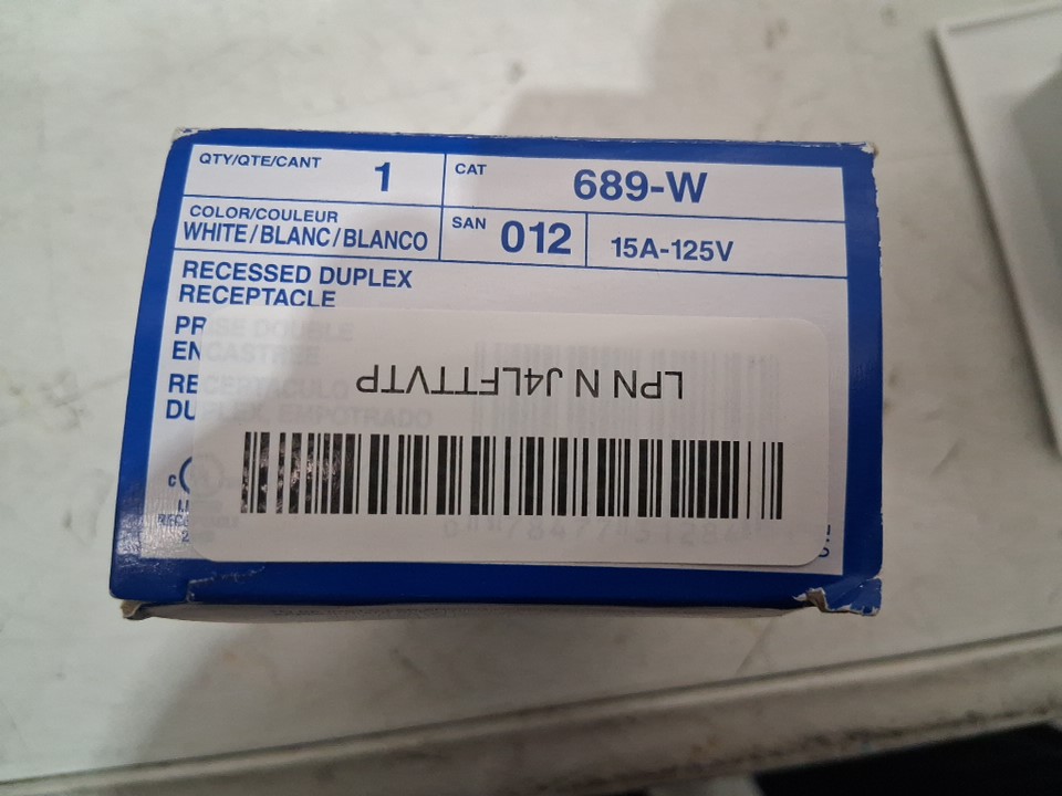 Leviton 1-Gang Recessed Duplex Receptacle Residential Grade with Screws Mounted to Housing- 125V, 15a - white - (model:‎689-W)