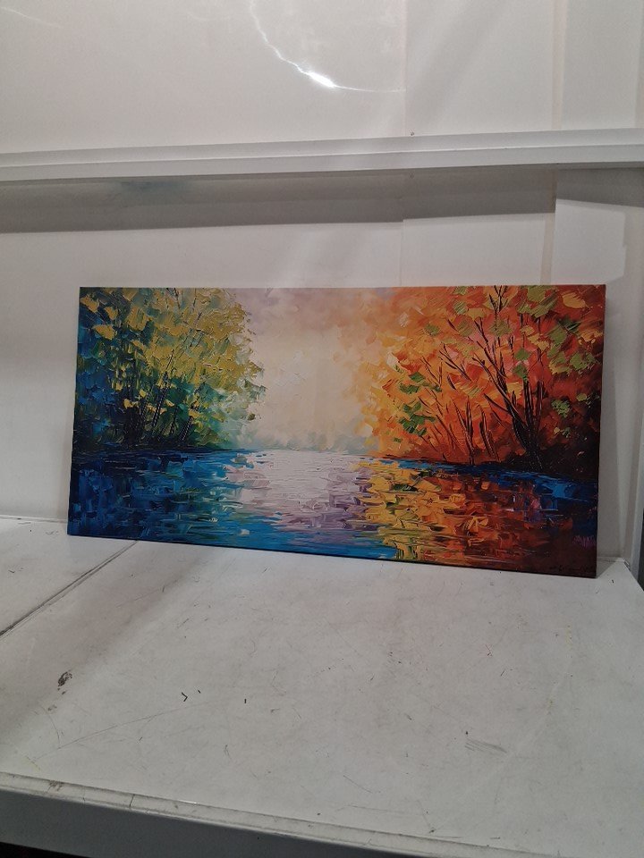 TEKMENT Beautiful River Scenery and Colorful Forests Palette Knife Painting Wall Artwork Decor on Canvas - 19.7" x 39.4"" - Multicolour (Model: V3a805)