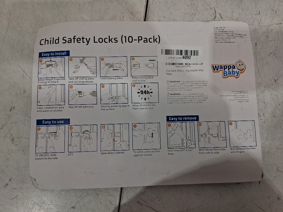 10PK KIDS WAPPABABY CHILD SAFETY CABINET DRAWER LOCKS - WHITE (MODEL: CSL10W)