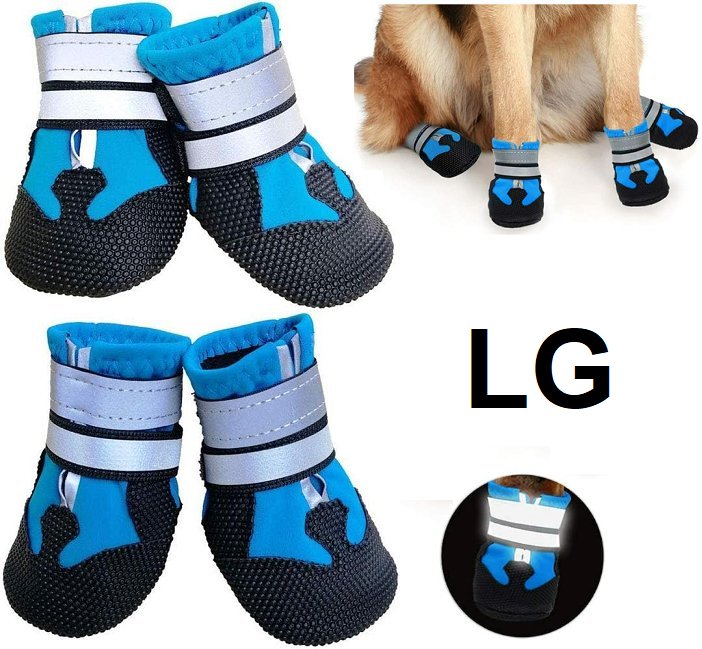 LEEKO anti-slip waterproof breathable soft soled reflective strip dog shoes - LARGE - black/blue