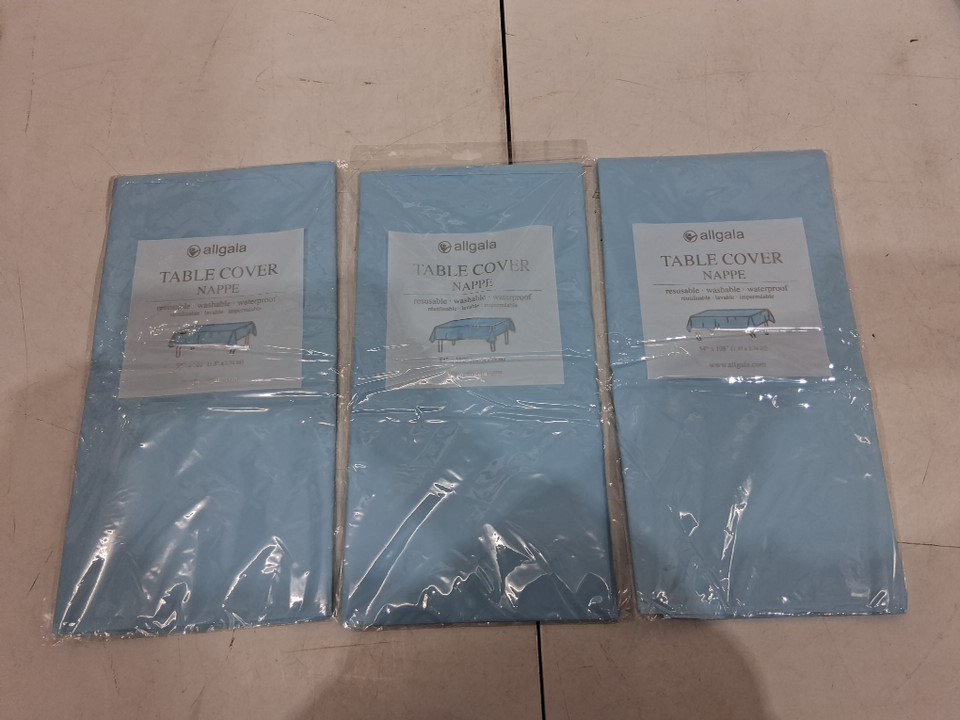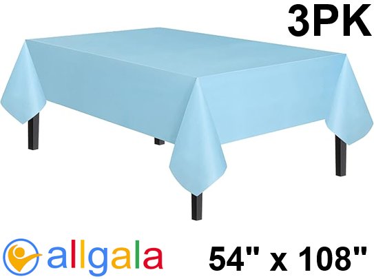 3PK Allgala Premium Plastic Table Cover Medium Weight Disposable Tablecloth - 54" x 108" - light blue