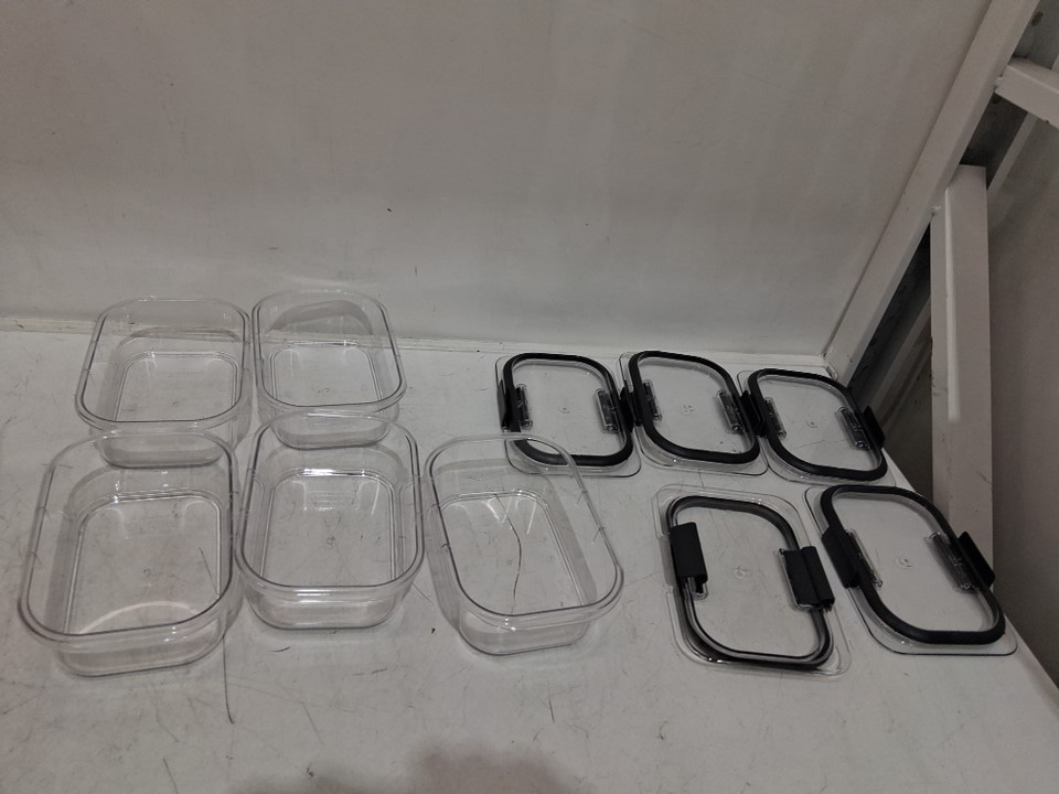 5PK RUBBERMAID FOOD STORAGE MEAL PREP BPA-FREE CONTAINERS - 3.2 CUPS EACH - BLACK/CLEAR (MODEL: 2053295)