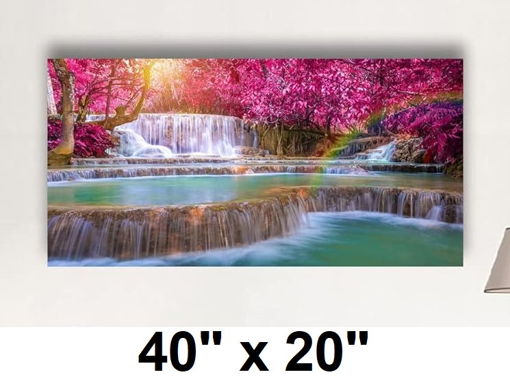 sigutie waterfall landscape canvas wall art - 40" x 20" - multi-colour