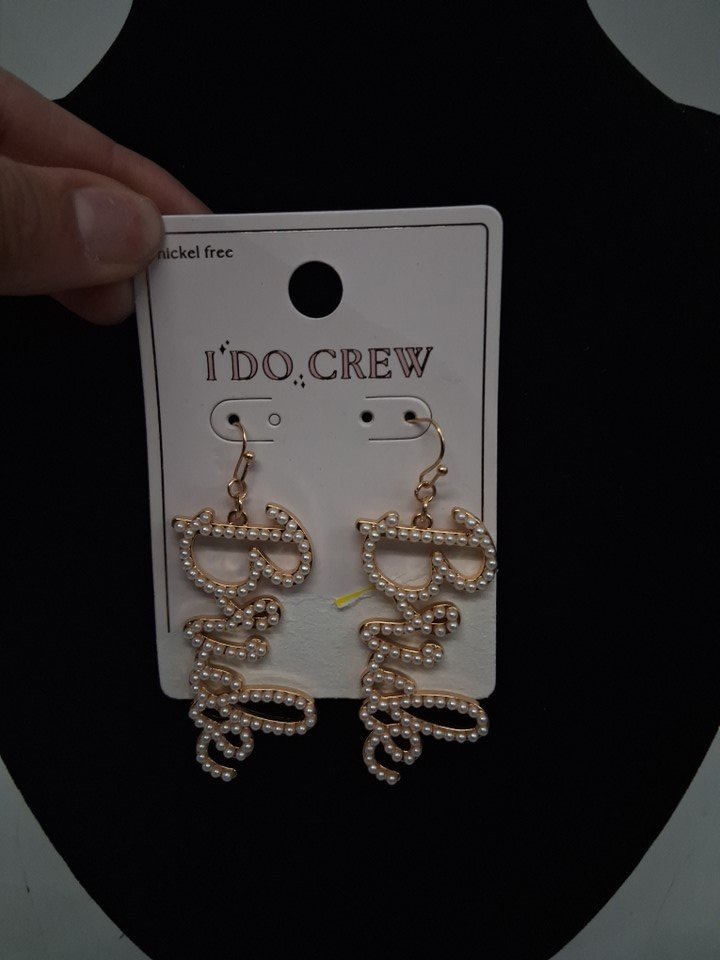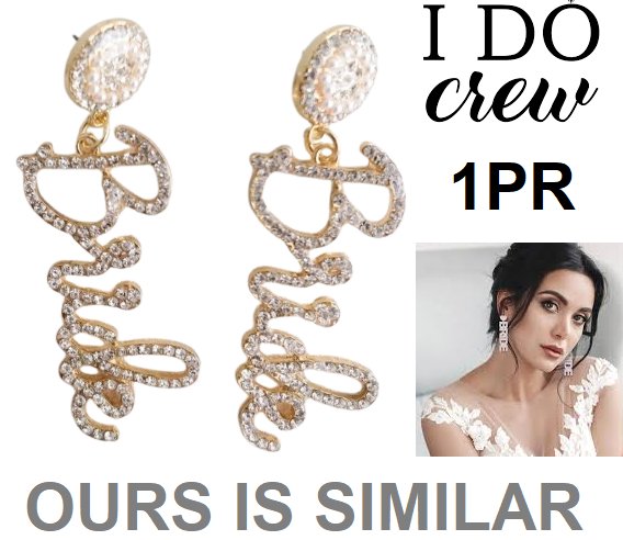1PR womens i do crew bride earrings - nickel free - white / gold