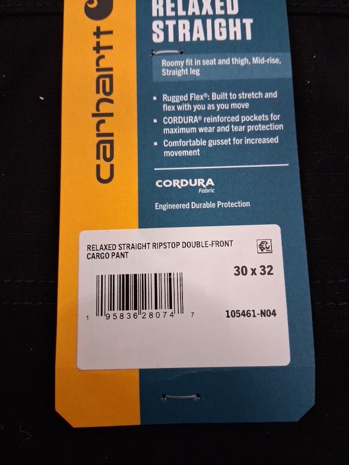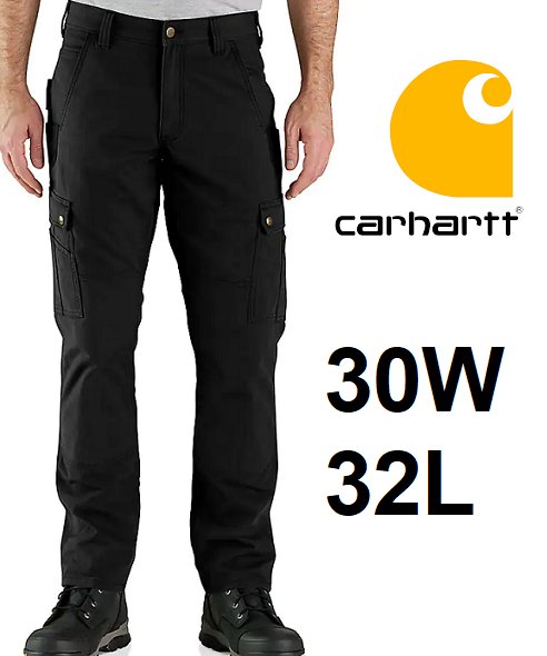 MENS CARHARTT Rugged Flex Relaxed Fit Ripstop Cargo Work Pant - 30W X 32L - BLACK (STYLE: 105461-N04)