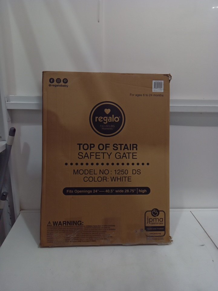 Regalo Extra Wide 2-in-1 Top of Stairway and Hallway Safety Gate with Mounting Kit - 29"x24"-40.5" - White (Model: 1250DS)