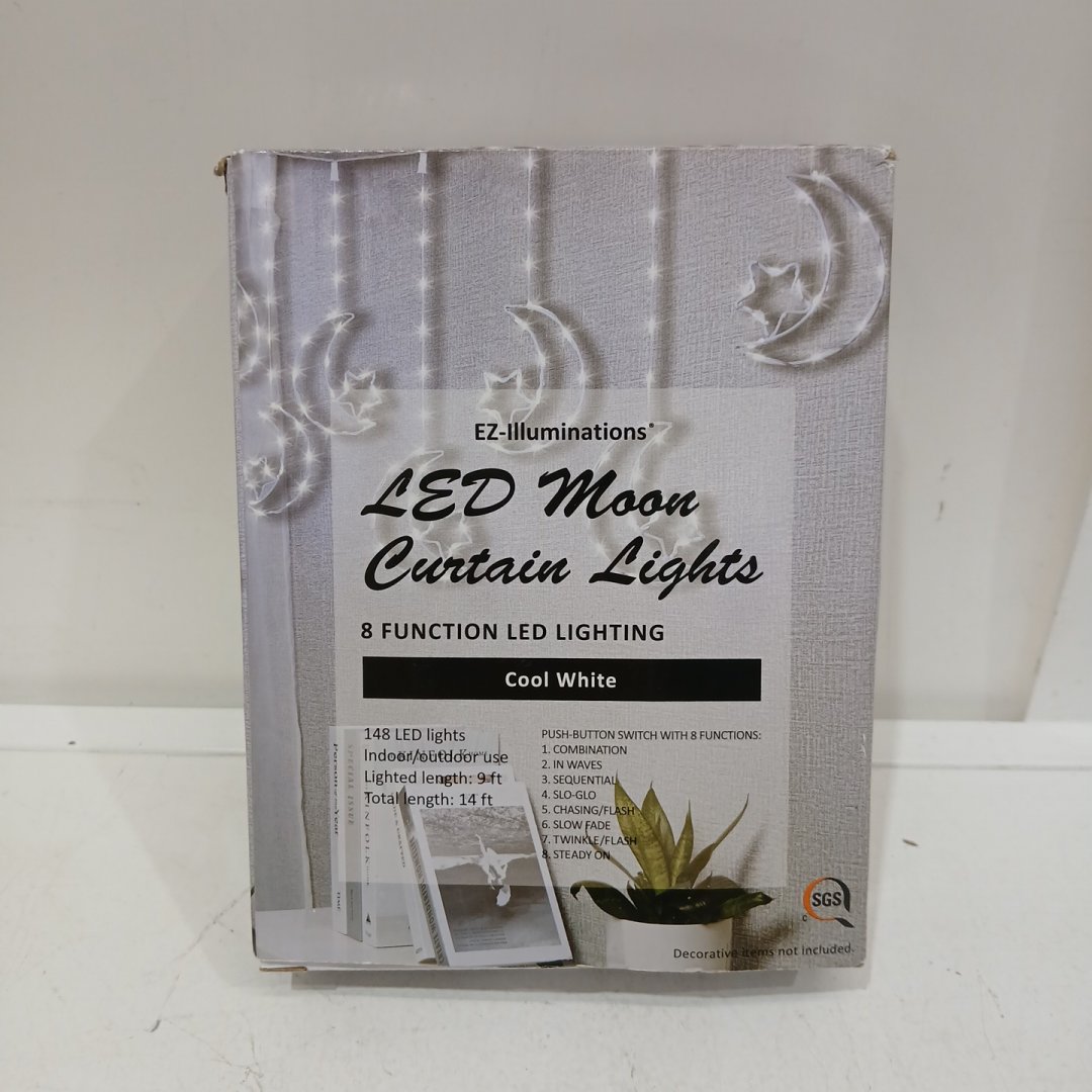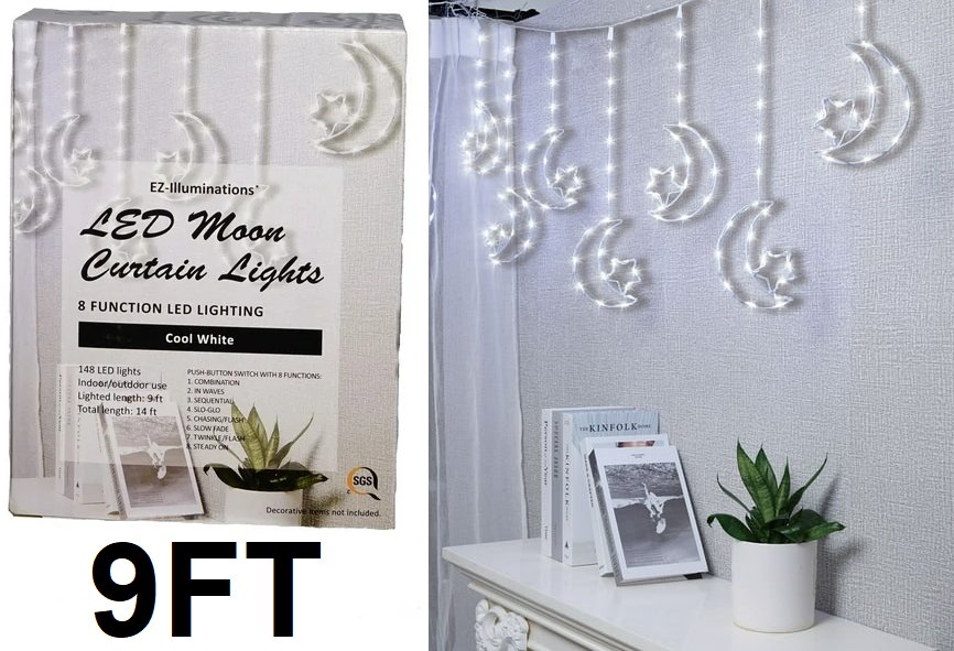 EZ-ILLUMINATIONS LED MOON CURTAIN LIGHTS - 8 FUNCTION LED LIGHTING, 9FT - COOL WHITE