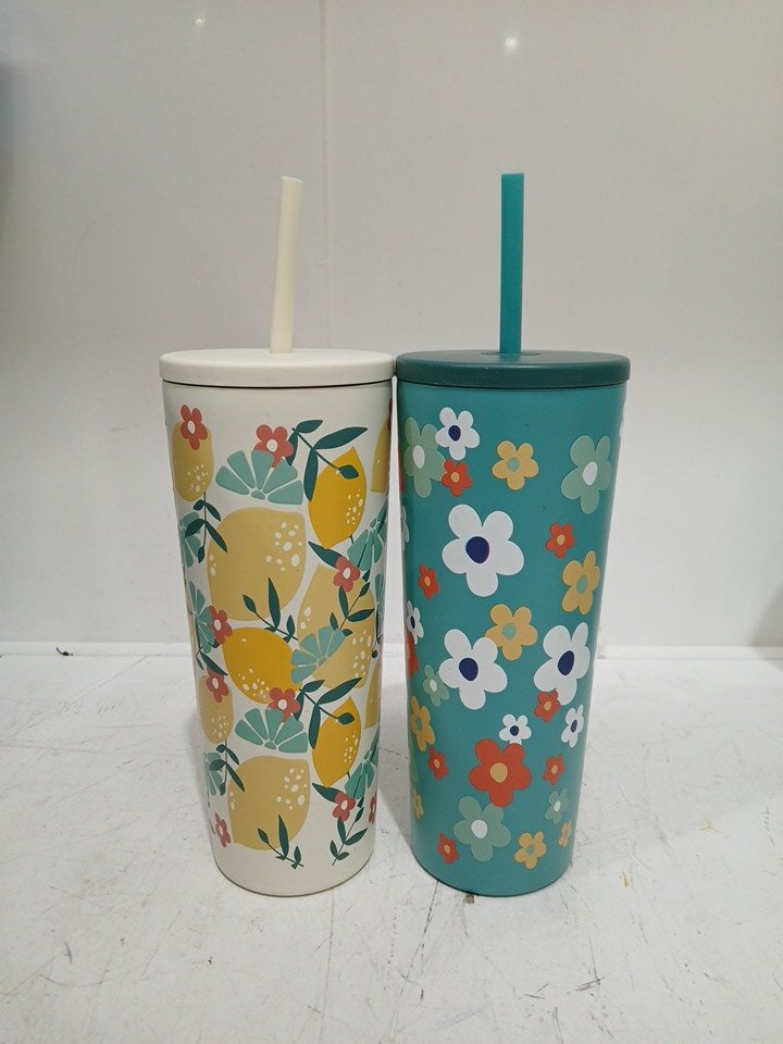 2 home trends insulated tumbler with straw - blue/yellow