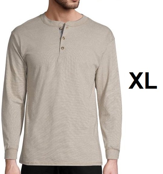 MEN'S HANES BEEFY LONG SLEEVE HENLEY SHIRT - EXTRA LARGE - PEBBLESTONE CROSSDYE