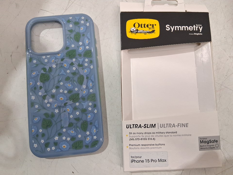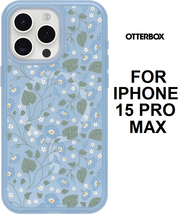 otterbox symmetry series ultra-slim phone case with magsafe - for iphone 15 pro max - Dawn Floral blue (MODEL: 77-93096)